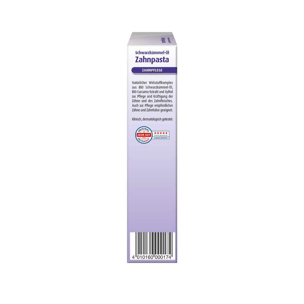 Schwarzkümmel-Öl enthält hochwertige Inhaltsstoffe, die bei Parodontose und Zahnfleischentzündungen besonders pflegen und den Mundraum gesund halten. Curcuma-Extrakt und Xylitol helfen durch die antibakterielle Wirkung, kariesverursachende Bakterien zu hemmen und können so vor Plaquebildung schützen. Rein mineralisches Silicium-Gel sorgt als natürlicher Putzkörper für eine sanfte und effektive Reinigung der Zähne und Zahnzwischenräume, ohne dabei den Zahnschmelz anzugreifen.