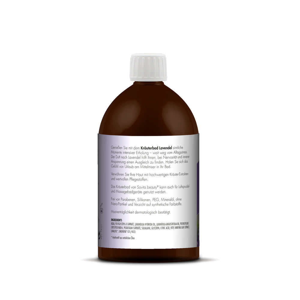 Genießen Sie mit dem Kräuterbad Lavendel sinnliche Momente intensiver Erholung – weit weg vom Alltagsstress. Der Duft nach Lavendel hilft Ihnen, bei Nervosität und innerer Anspannung einen Ausgleich zu finden. Holen Sie sich das Gefühl von Urlaub am Mittelmeer in Ihr Bad. Verwöhnen Sie Ihre Haut mit hochwertigen Kräuter-Extrakten und wertvollen Pflegestoffen. Das Kräuterbad kann auch für Luftsprudel- und Massagebadgeräte genutzt werden.