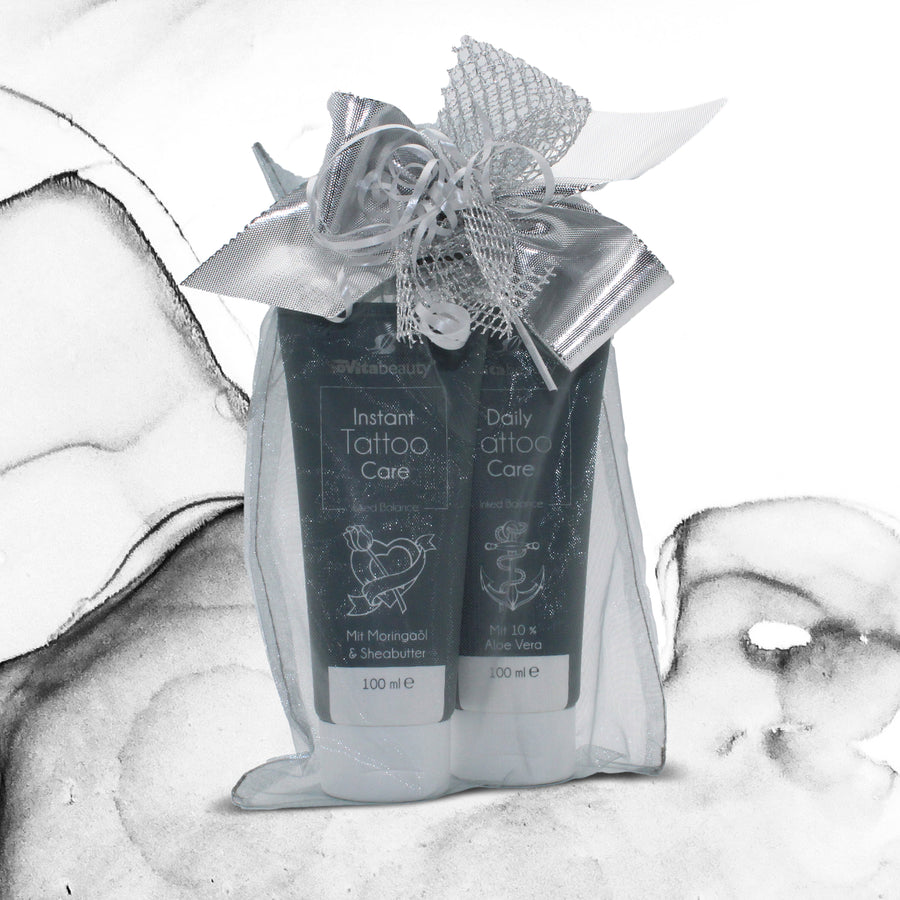 Mit unserem Tattoo Pflege-Set sorgen Sie dafür, dass Ihre Haut zu jeder Zeit geschmeidig bleibt und optmieren hiermit die Pflege Ihrer Tattoos.