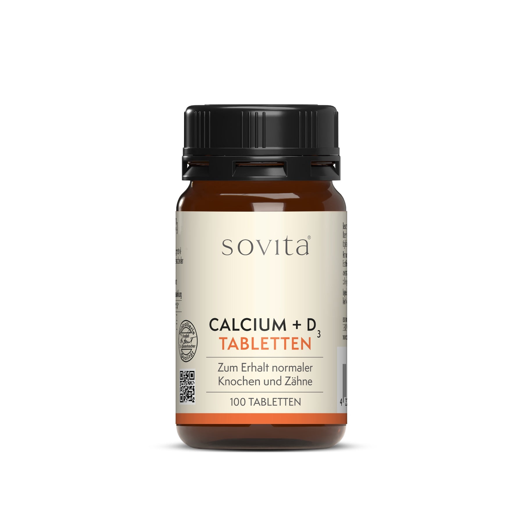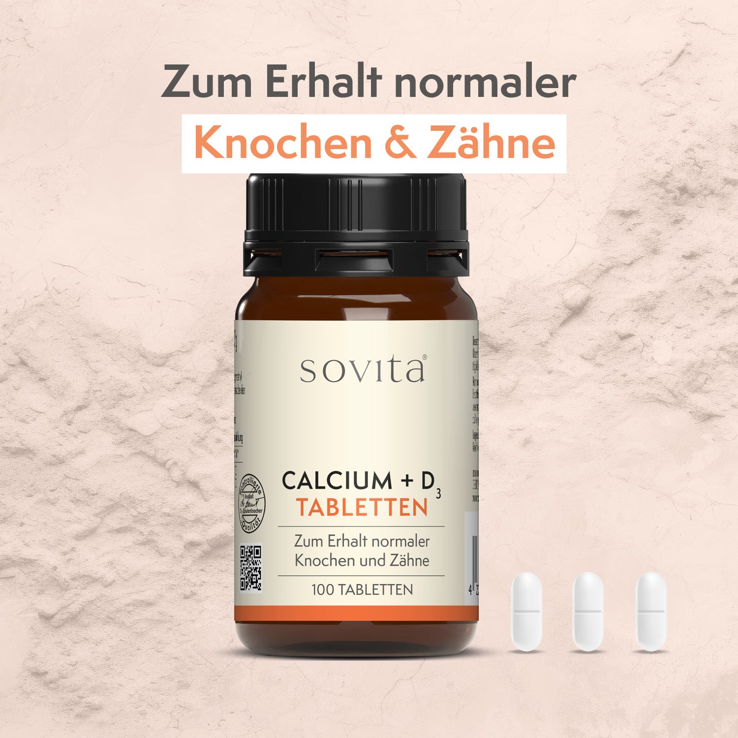 Die sovita Calcium + D3 Tabletten liefern eine gezielte Kombination aus Calcium und Vitamin D3, zwei Mikronährstoffen, die wichtige Funktionen im Körper erfüllen. Calcium wird für die Erhaltung normaler Knochen und Zähne benötigt. Vitamin D trägt zu einer normalen Aufnahme von Calcium bei und unterstützt ebenfalls die Knochengesundheit. Die Tabletten sind einfach dosierbar und eignen sich besonders zur täglichen Versorgung – etwa bei erhöhtem Bedarf im Wachstum, bei unausgewogener Ernährung oder im höheren Lebensalter.