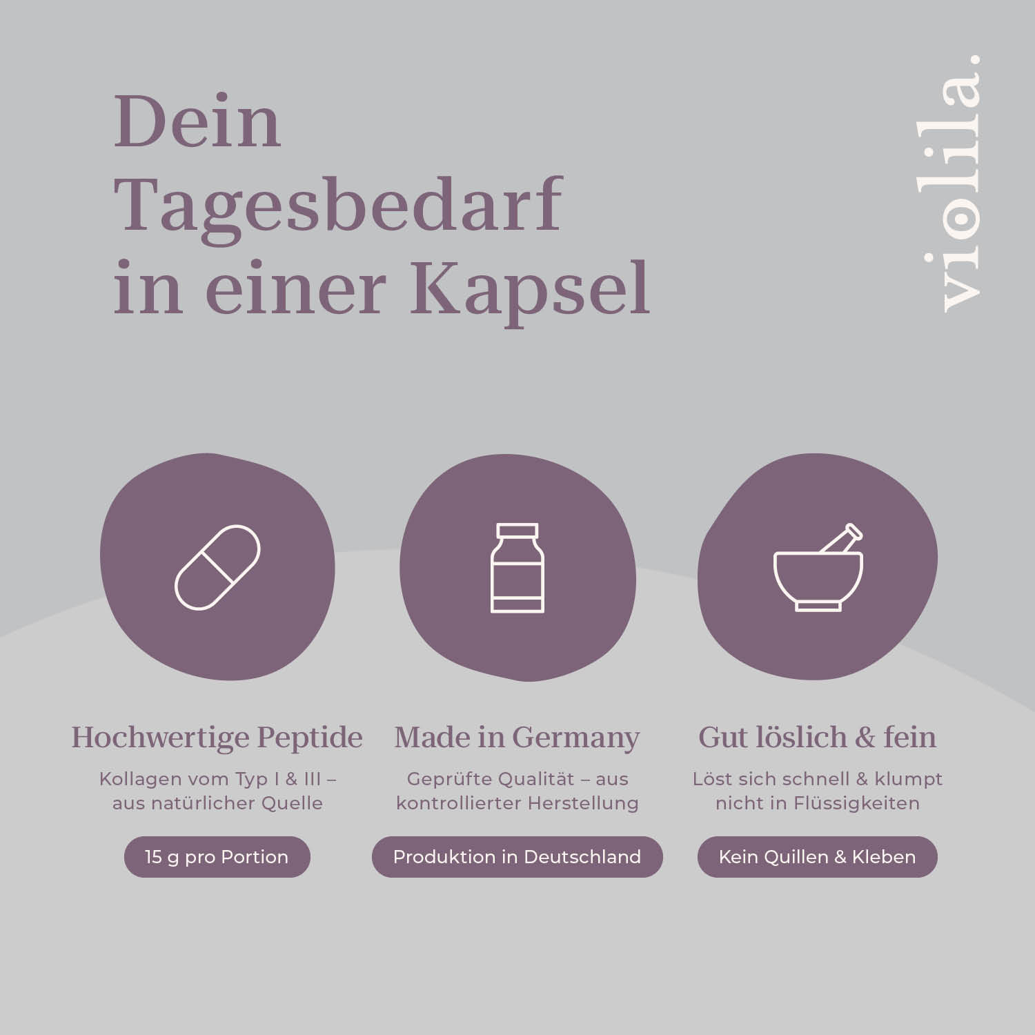 violila Kollagen⁺ liefert dir hochwertiges Kollagenhydrolysat vom Typ I & III zur gezielten Ergänzung deiner täglichen Ernährung.