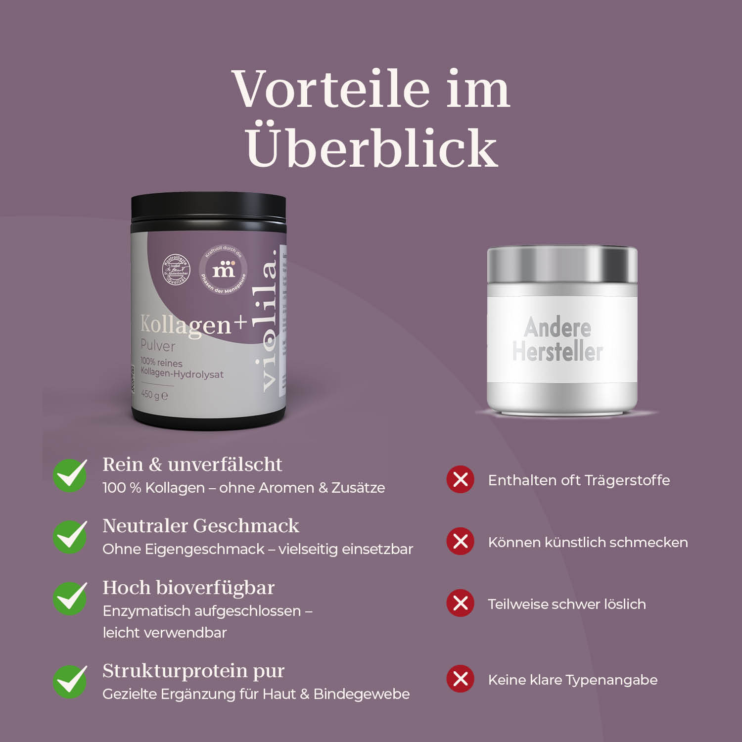violila Kollagen⁺ liefert reines, enzymatisch aufgeschlossenes