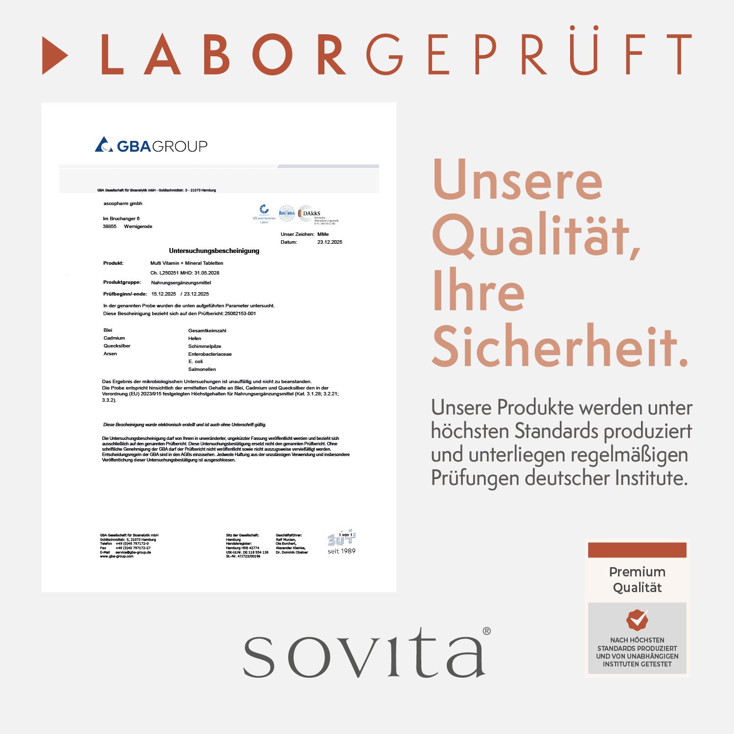 Die sovita Multi Vitamin + Mineral Tabletten bieten Ihnen folgende Vorteile: