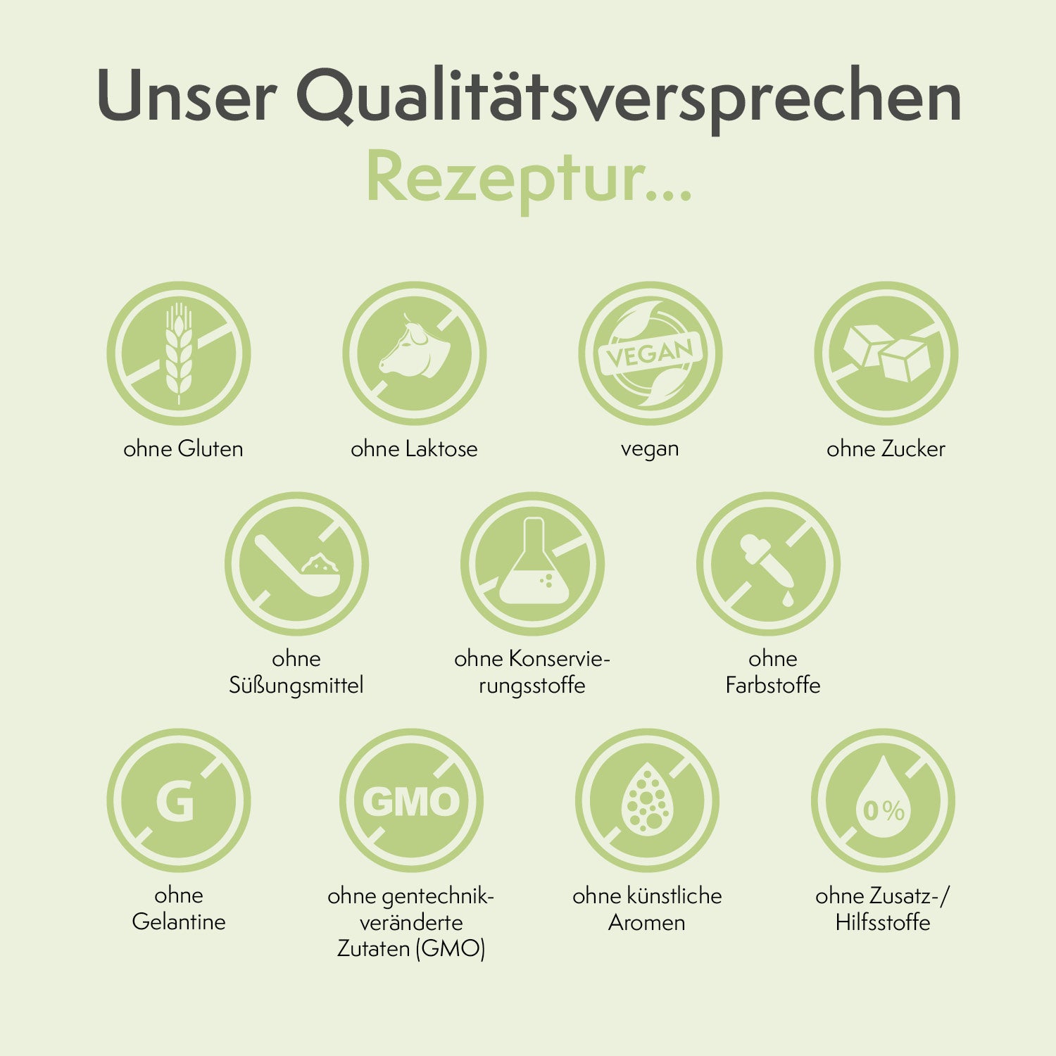 ✔ Vegan, ohne Gelatine oder tierische Bestandteile