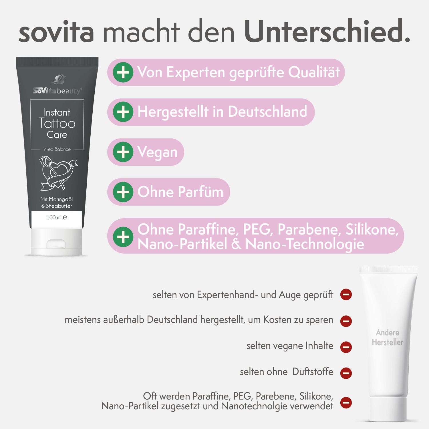 Zur Pflege von frisch gestochenen Tattoos, ab dem 4. Tag nach dem Stechen.