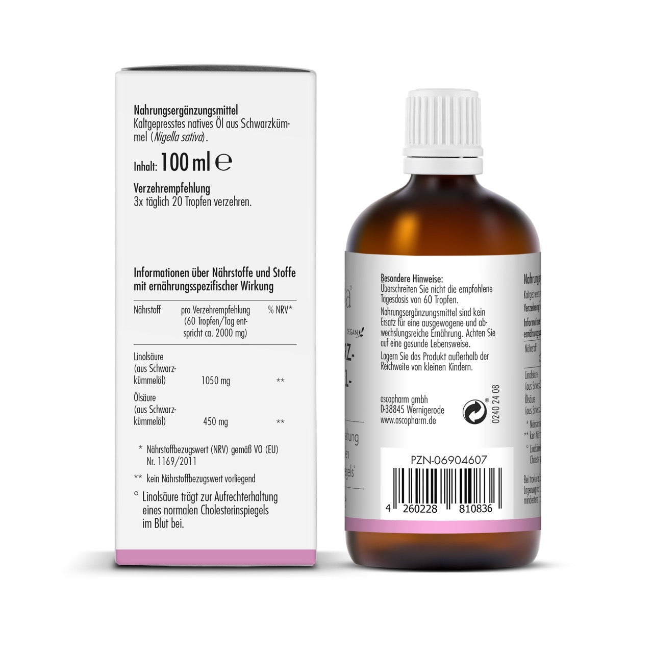 100 ml kaltgepresstes natives Öl aus Schwarzkümmel (Nigella sativa).