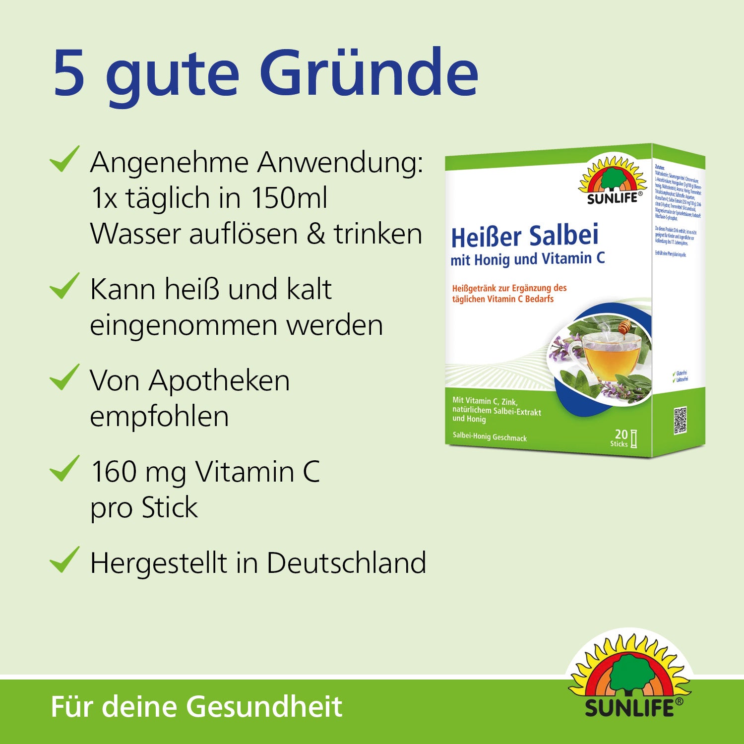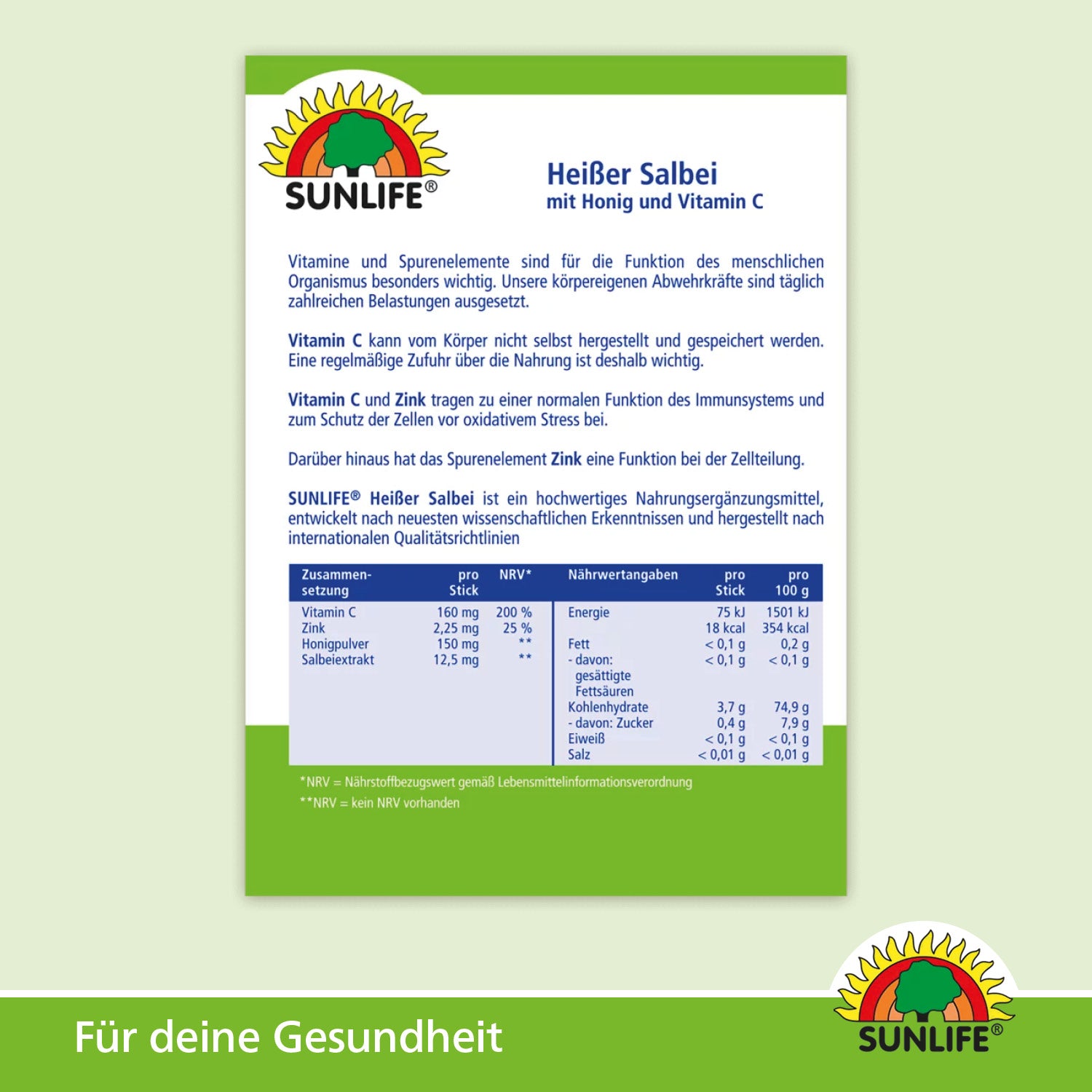 SUNLIFE® Heißer Salbei ist ein hochwertiges Nahrungsergänzungsmittel, entwickelt nach neuesten wissenschaftlichen Erkenntnissen und hergestellt nach internationalen Qualitätsrichtlinien.