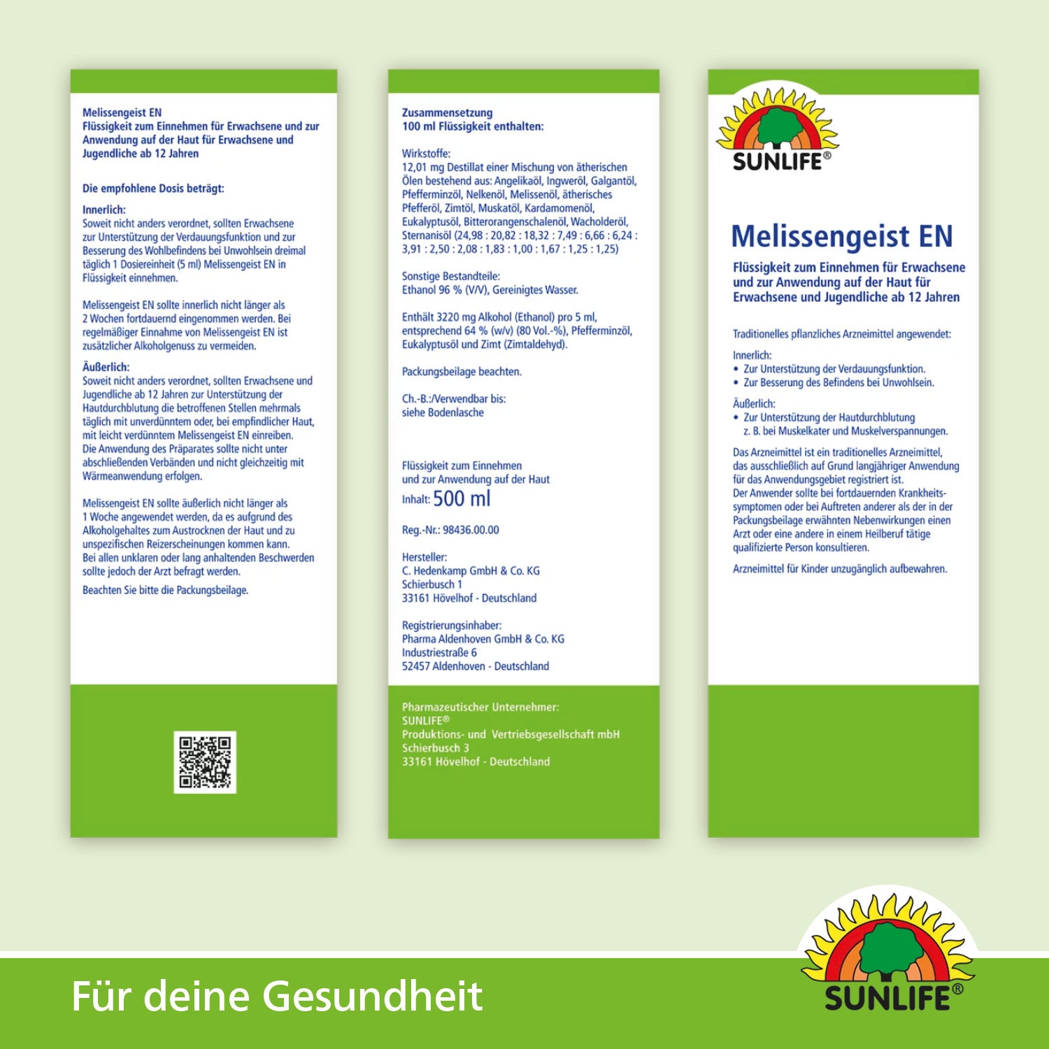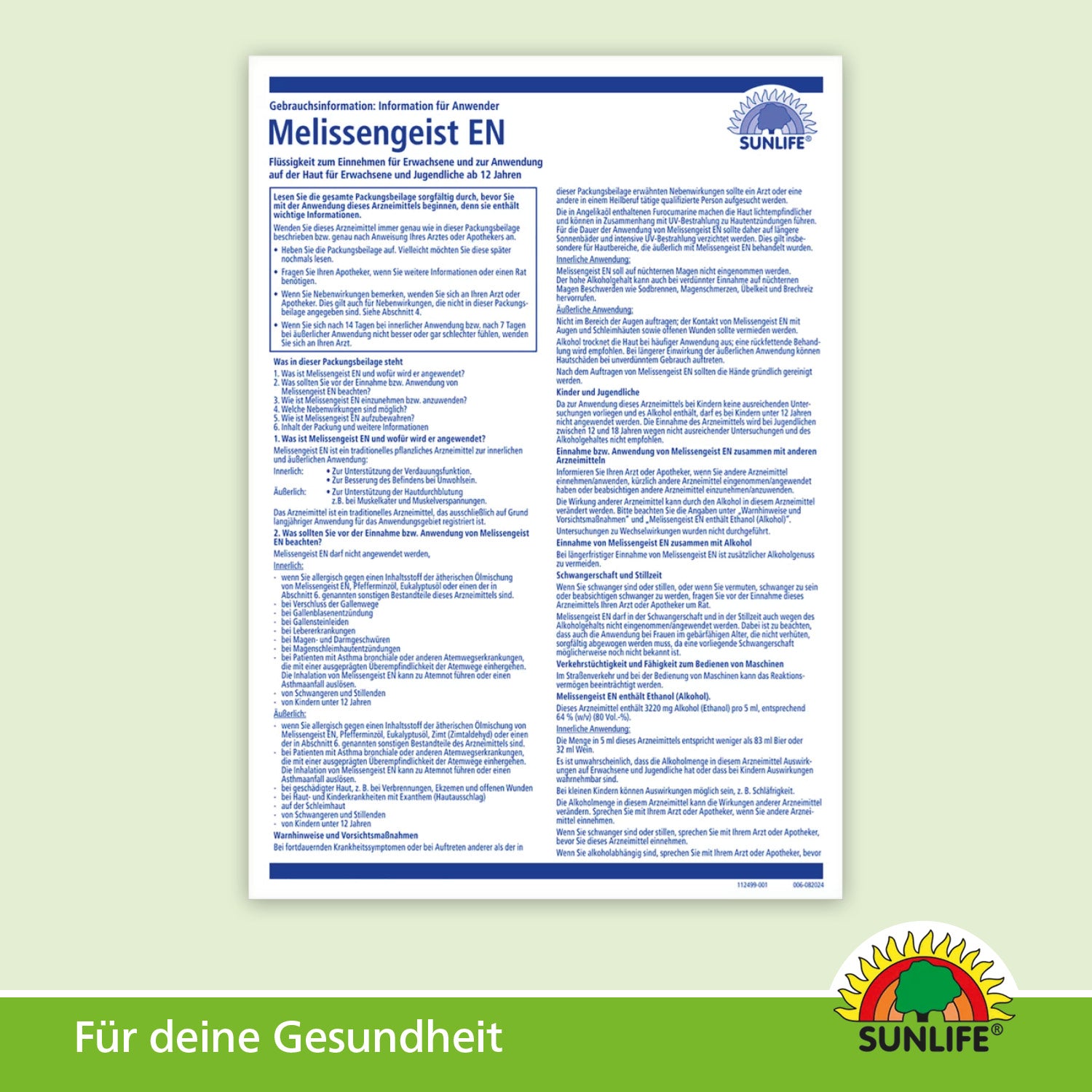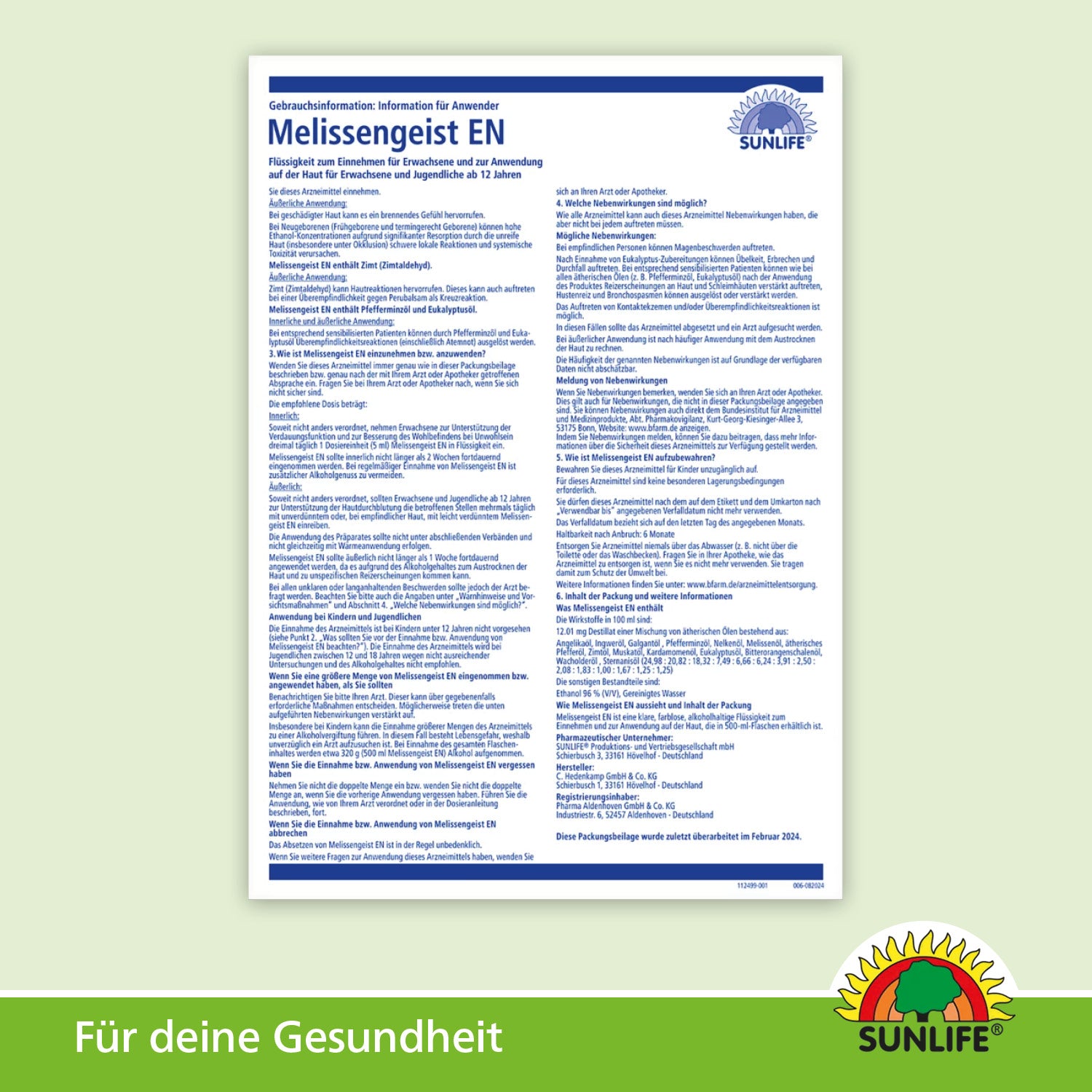 Beipackzettel SUNLIFE® Melissengeist EN