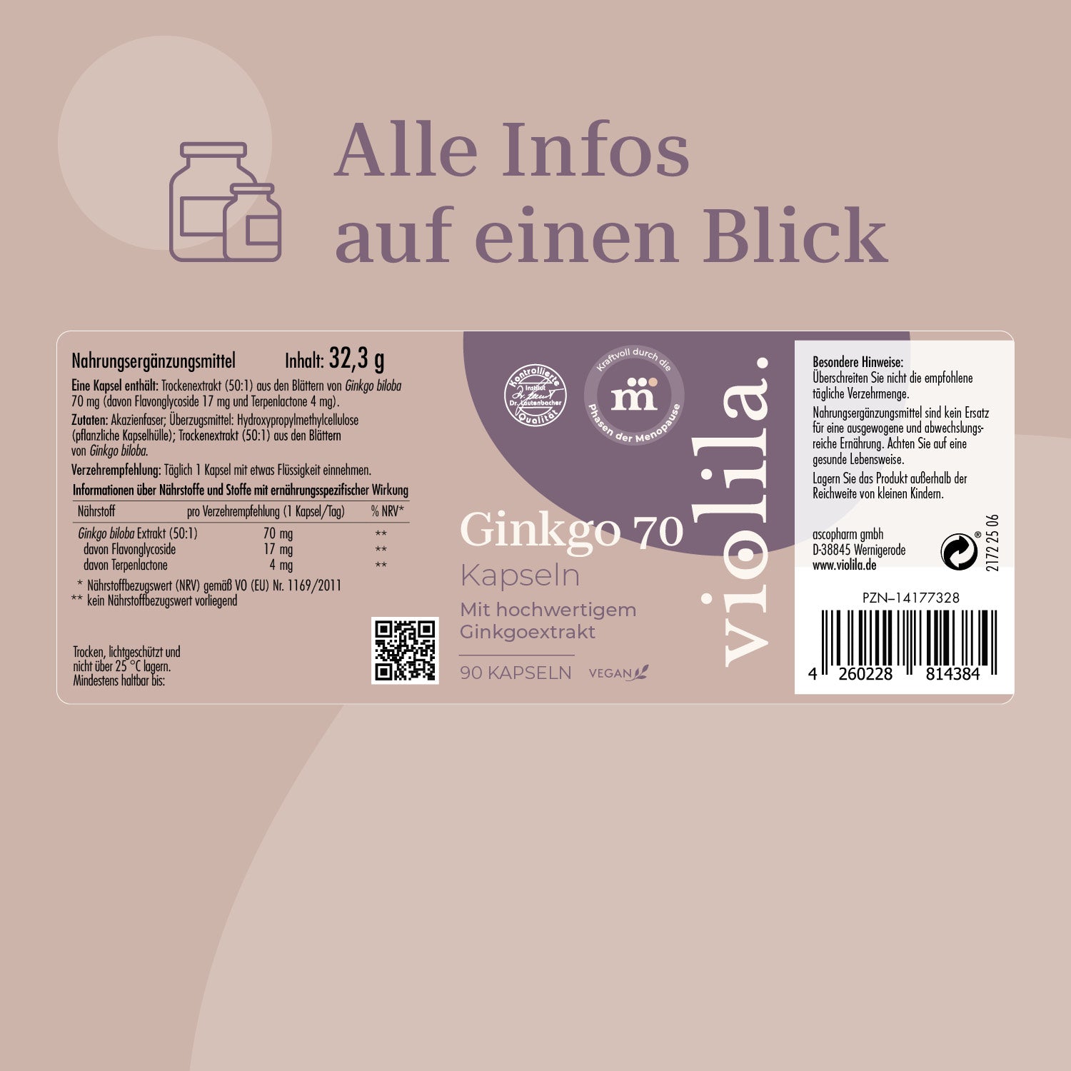 Trockenextrakt (50:1) aus den Blättern von Ginkgo biloba 70 mg (davon Flavonglycoside 17 mg und Terpenlactone 4 mg).