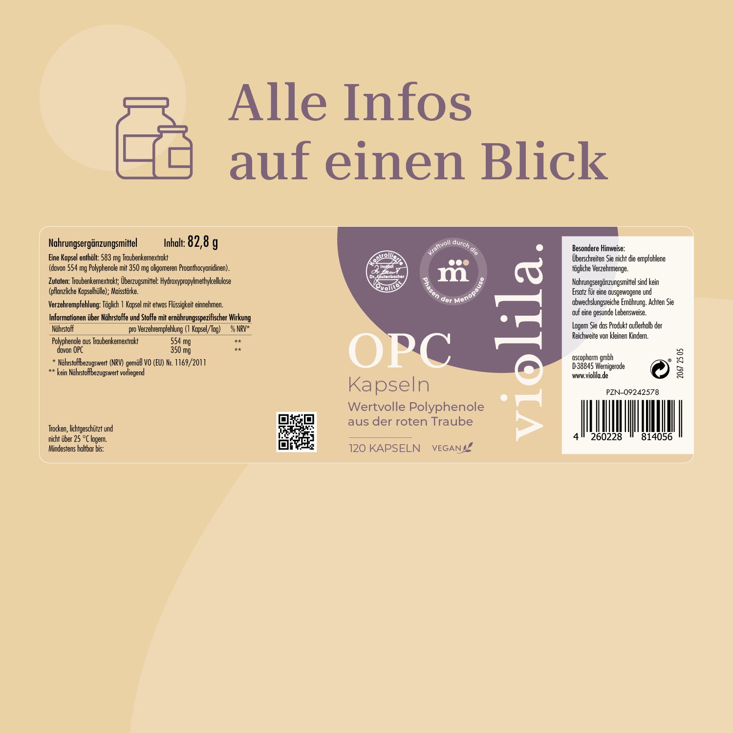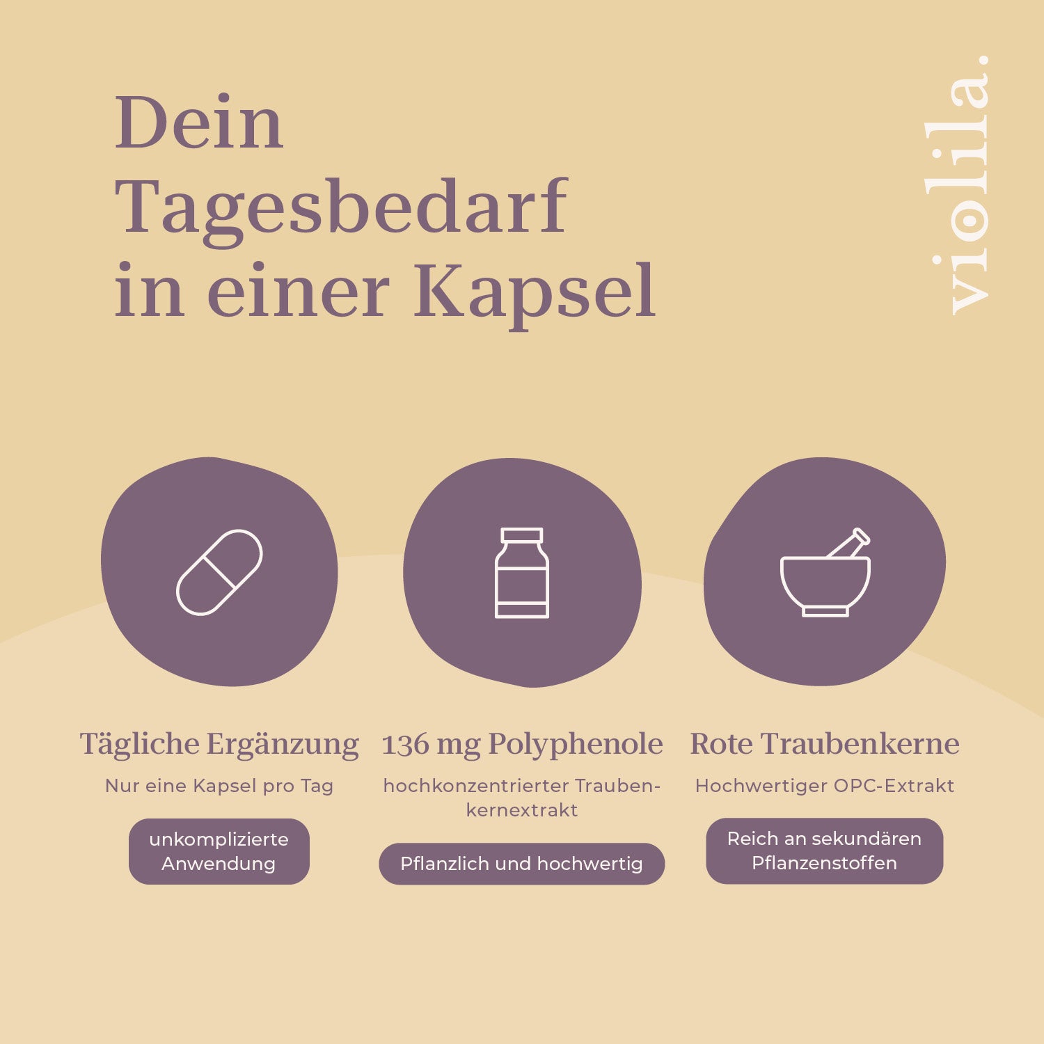 violila OPC Kapseln enthalten hochkonzentrierten Traubenkernextrakt mit einem besonders hohen Anteil an OPC (oligomeren Proanthocyanidinen).